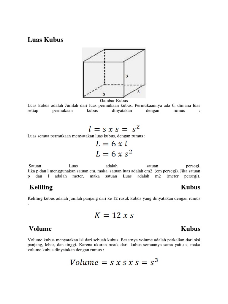 untuk "Rumus Rusuk Kubus - Rumus Volume Kubus Dan Luas Permukaan Belajar Mandiri Yuk / S = panjang rusuk kubus ( cm )."